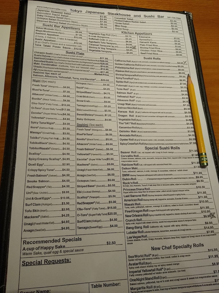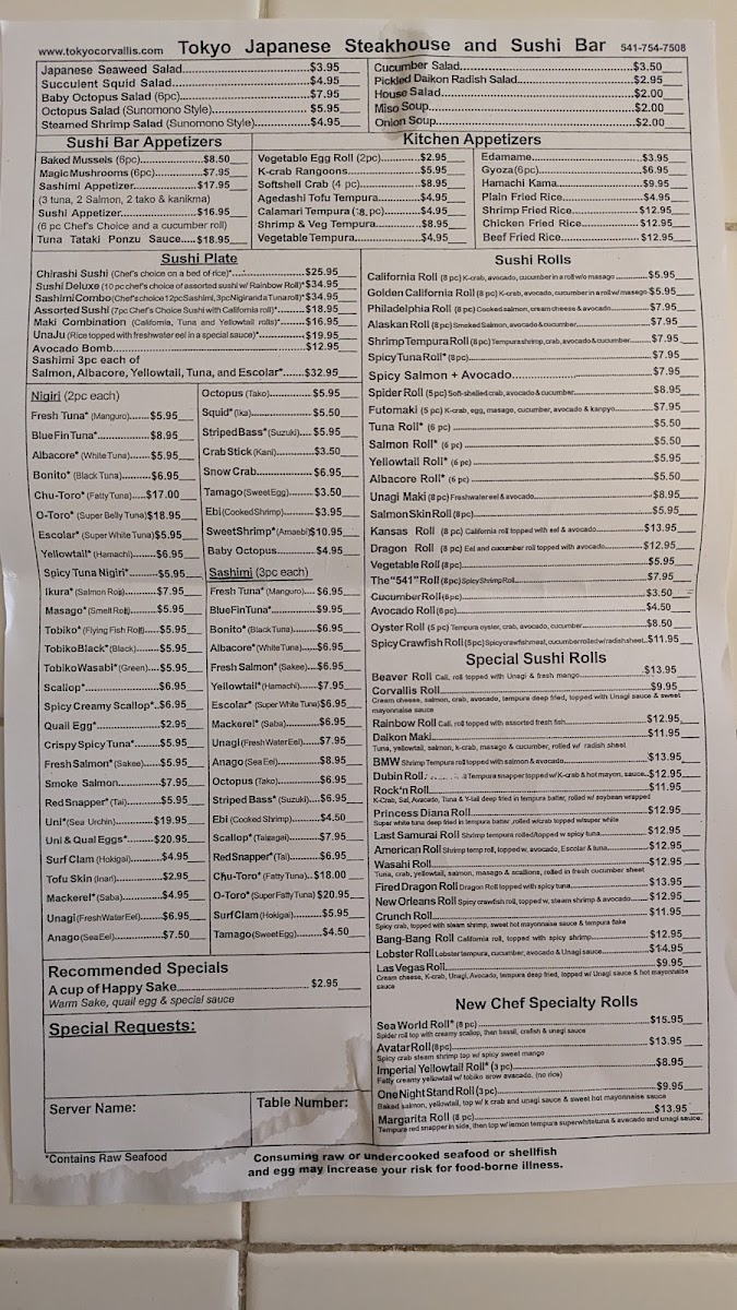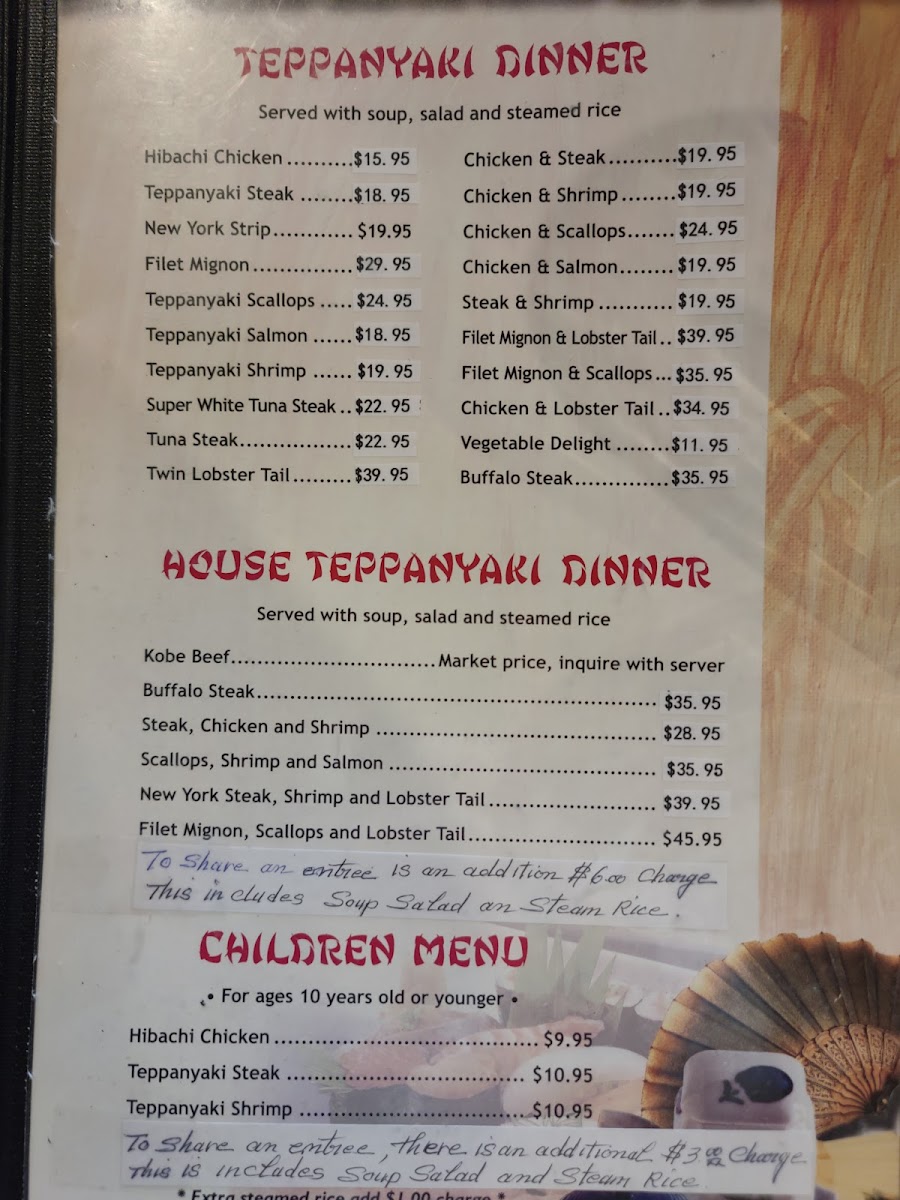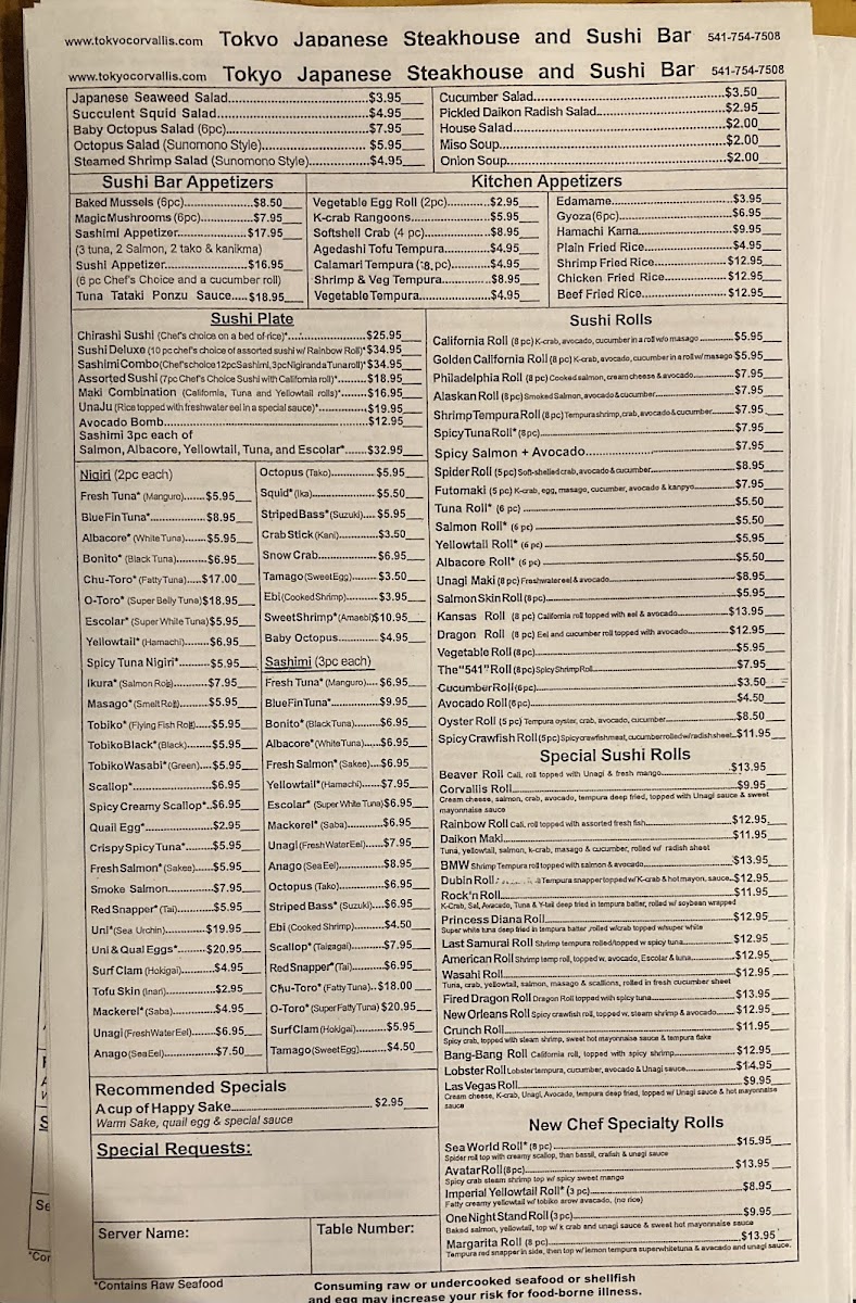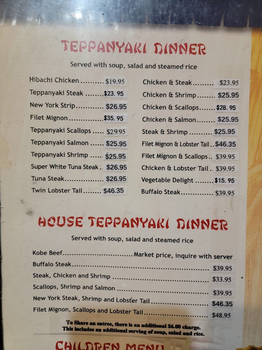 Tokyo Japanese Steakhouse & Sushi Bar Menu