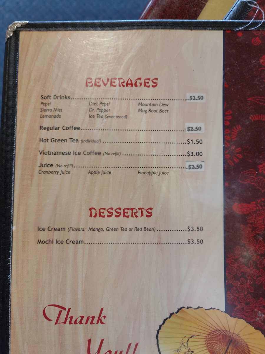 Teppanyaki and Hibachi Entrees: The menu includes grilled dishes prepared on a teppanyaki grill, such as hibachi chicken and steak, often accompanied by fried rice and vegetables. This section serves those looking for a cooked entrée with accompanying sides.